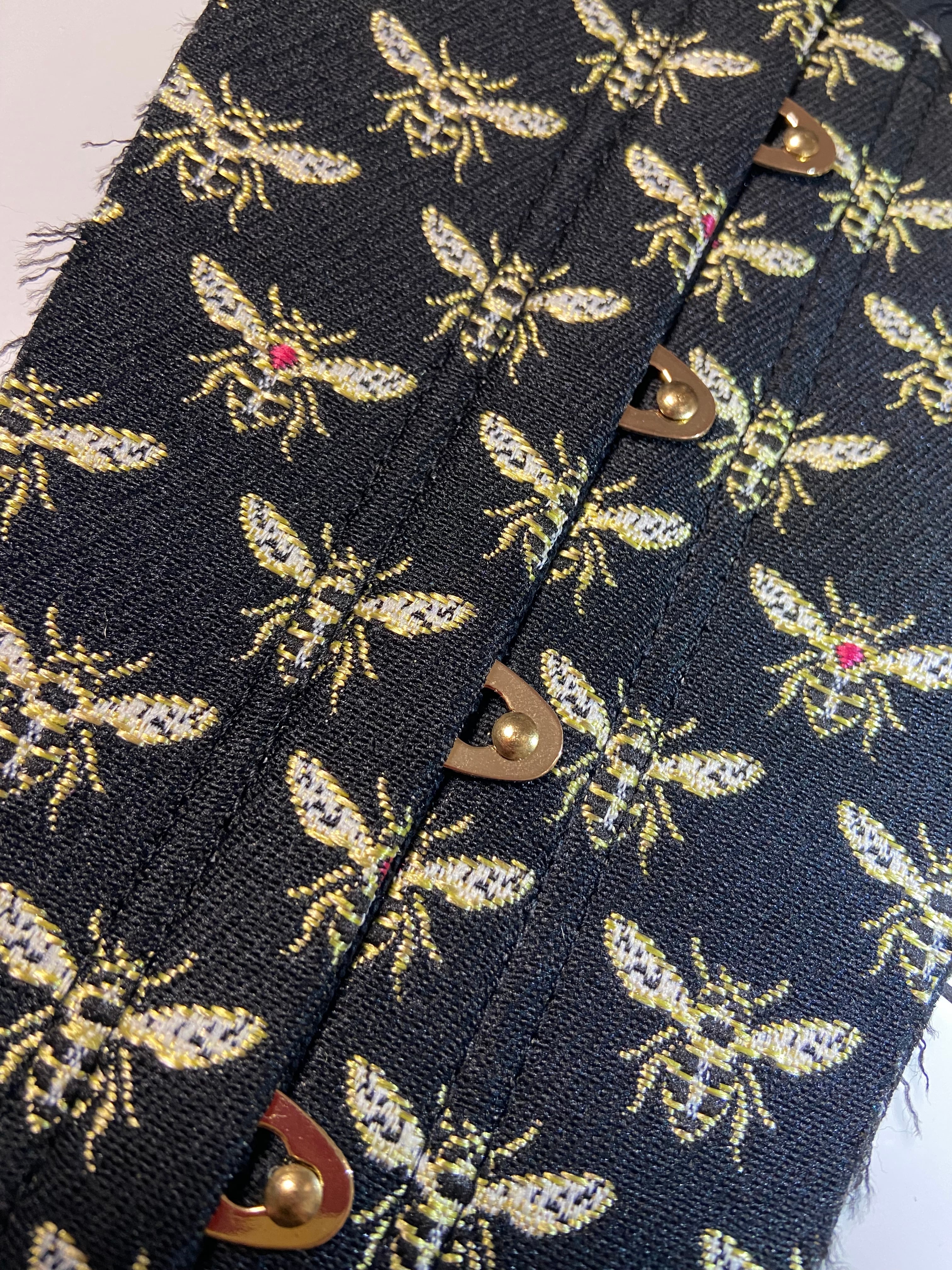 金糸で織られた蜂柄フランス産のジャガード織の布地を使用